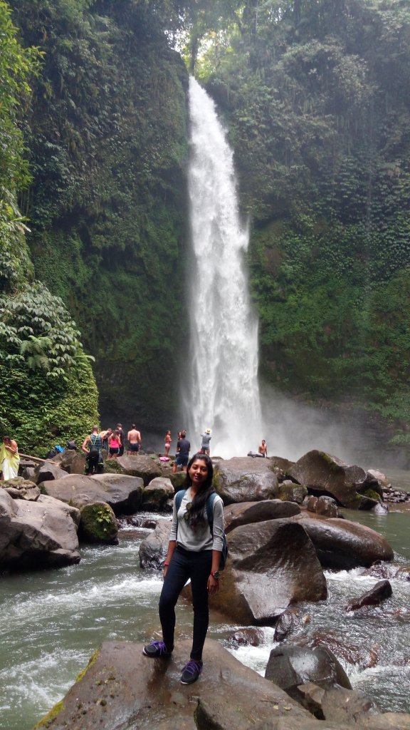 The entrance to the waterfall is 10K IDR per person. As it’s a waterfall, quite naturally people will have lot of expectations. But there’s always a price to be paid for good things. You have to take 433 steps down to reach the waterfall. Better carry your swim suit, towel, or an extra set of clothes to get refreshed and energize to come all the way up, bathing in the waterfall. Trust me, even after taking all those tiresome steps, the journey for the waterfall is really worthy. The force of the milky water pounding on the rock, splashing some drops on the people who are not bathing in the water!! The water is cool, not calm but reliefs you.
