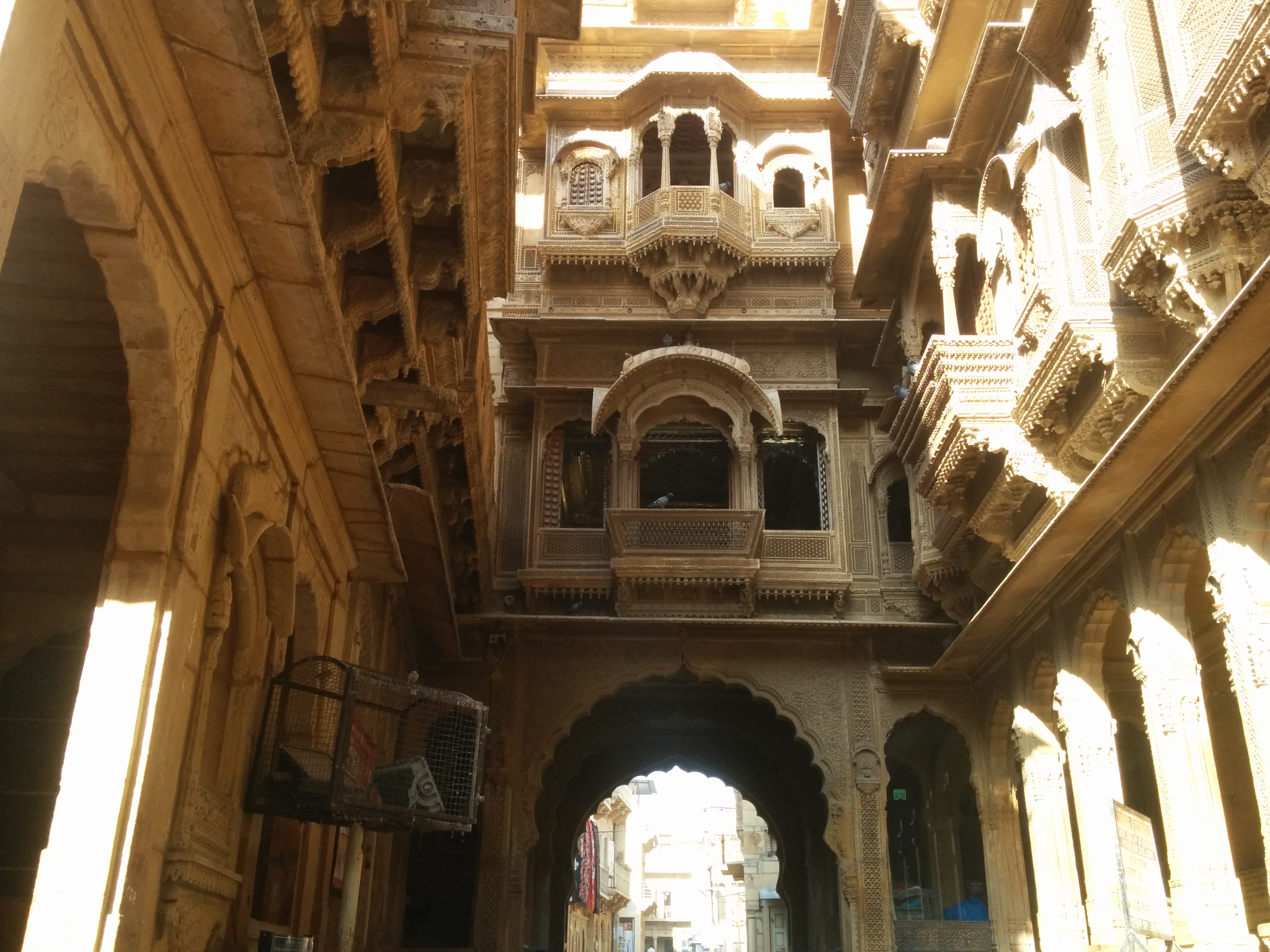Patwa Haveli or Patwon ki haveli, was built by the famous merchant Patwa. The biggest and richest merchant of their time in this region, the mansions are still standing tall, with the honey gold colored crafted work on the outer walls, which is called Jafri work in local language. The inside walls have different look in every rooms, the accountant office, the kitchens, living rooms; these havelis (Mansion) were no lesser than the king’s palace. What made me speechless was the explicit art work, the particularized architecture, the fine technicalities used to build these mansions. There are five havelis built for five brothers (entry fees for each Havelis are separate, RS. 10/20 for the first Haveli, RS. 50 for the other 4 each for Indian Passport holders) the rest of the 4 havelis are partially inhabited by locals, mostly merchants. The other buildings on these lane has the same mandatory art work (it’s kind of a law imposed by the local government, even if someone is thinking of renovation, the outer walls have to have the closest replica of the Jafri work only, nothing else), of course the same old exclusively hand crafted art work cannot be expected, but the golden shade and the machine made craft has to be almost close to the real one.