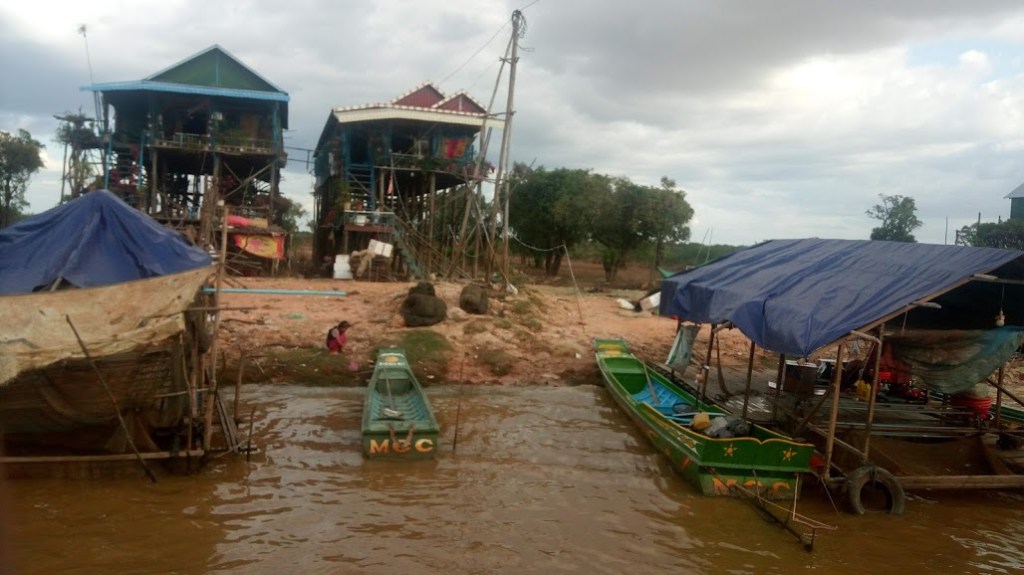 My tour for the day was to a village called Kompong Phluk. Going there is easy, a 40-minute drive from the city to the countryside area crossing the green rice fields, where the ferry pier stands. From there another 30 minutes by boat to the floating village. On the way, I did see other Floating villages, and they all are made of wood and strangely built on a platform which is about 6-9 feet higher from the ground level. Even some houses are built on shallow water as well, and none of them look lavish or well thought decorated.