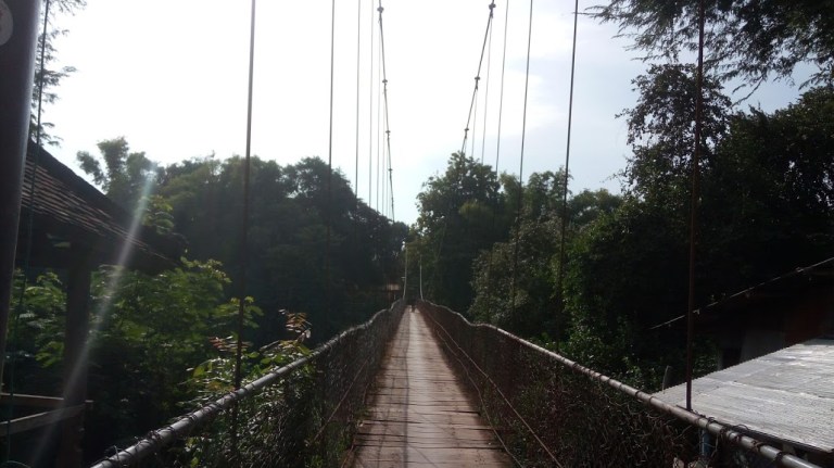 One of the stops was by the hanging bridge, connecting the villages residing at both sides of the river. The view of the place is so canvas perfect. Apart from using the bridge on foot, locals also carry their light vehicles like cycles or bikes over the bridge. The river though seems of decent flow during the dry season, the water level rises to few meters high during monsoon.