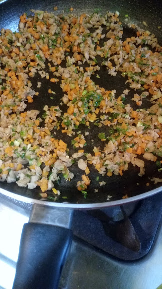 Taking inspiration from @SanjeevKapoorKhazan, I used Soya keema, spring onion, finely diced carrot, little bit of grated ginger, a bit of chili & soya sauce and seasoning. I didn’t have lemon grass, so I skipped it, but it still tasted slightly smoky.