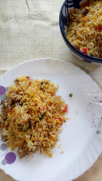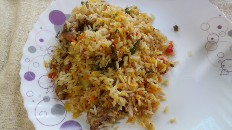 So I picked two of them, the easiest of the easy ones of course and took the viable ingredients from them and made this Easy- Healthy Chicken Biryani. Here is what I did: