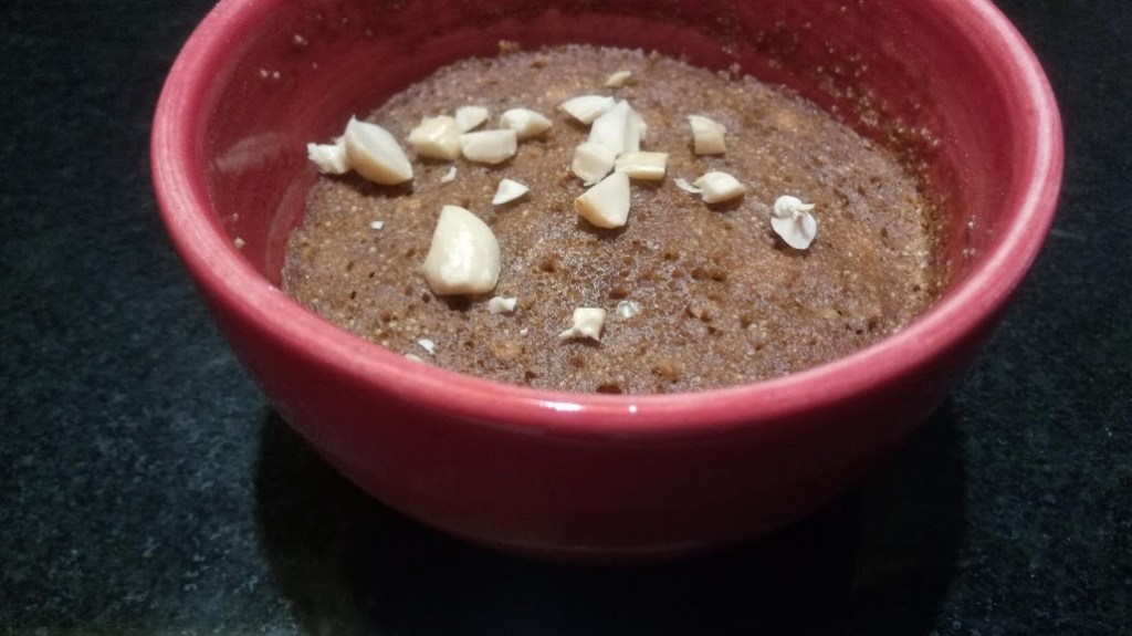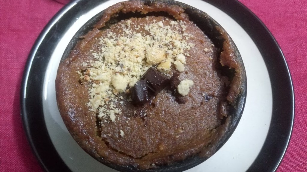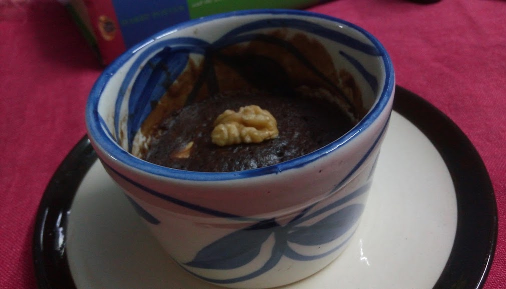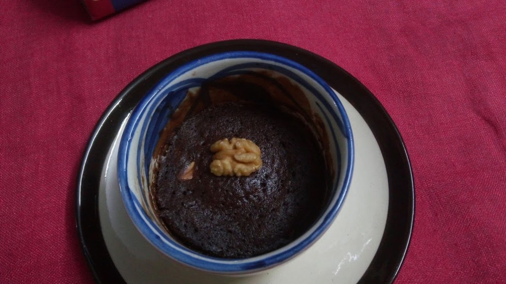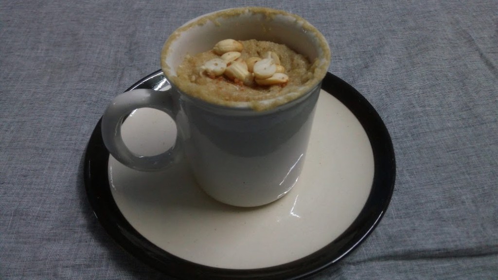 Mix them very well in the ramekin or small bowl or coffee mug whichever you prefer, put the mug in Micro wave for 1:30 minutes to 2 minutes. And it’s done.