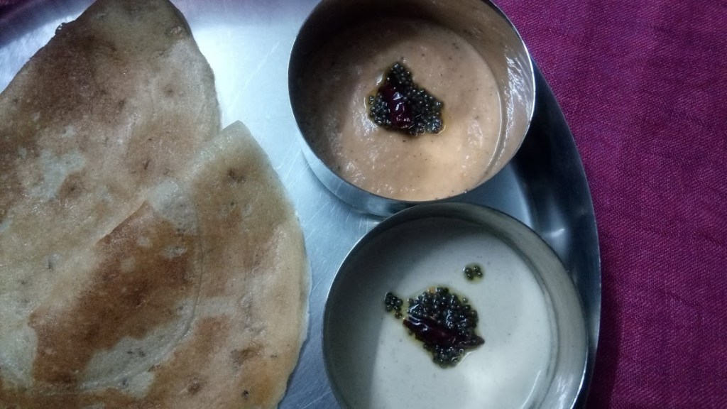 But again I do like having something different. I do crave for new interesting food all the time, my energy is never in sync with my heart you seeee!! This was one such survival winter supper idea for me.. If you too get slouchy like me at times.. it can be your option too. Here I am sharing the recipes of two chutneys, for Dosa check my older post.