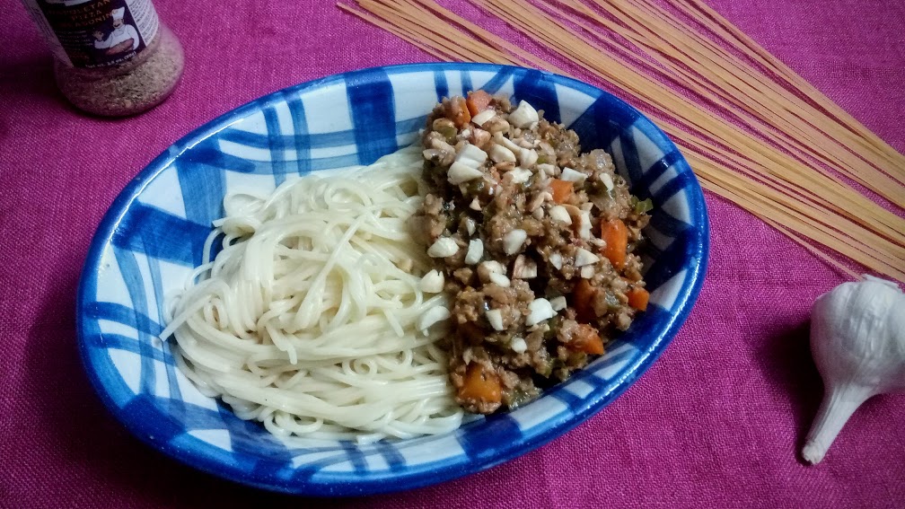 Let me come straight to the point today.. I Love the concept of Bolognese sauce. How minced meat mingles so well with tomatoes and together they emulsify into this creamy, intensely deluxe meal. But while searching for the recipe, I found most of the chefs prefer it with Meat, and though there were few available recipes with vegetables, the process was elaborate and quite heavy in the pocket… Could someone save me and let me have some pleasure of eating!!!