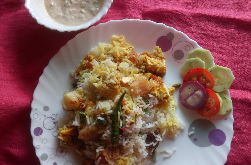 Enough of tittle-tattle, let’s come back to business now. I already had shared a recipe for Chicken Biryani, however the Lady of the House isn’t fond of chicken at all, and relishing chicken excluding your highness!! You know how grimly grim a situation that can be!! So, I always come with a solution in such cases, I made her a healthy Paneer Biryani (Of course we all gorged on it along with her)! Taking inspiration from @Sanjeev Kapoor Khazana, I made it little more affordable and easier. P.S. Affordable not in the sense of pricing, in the sense of availability of few ingredients.