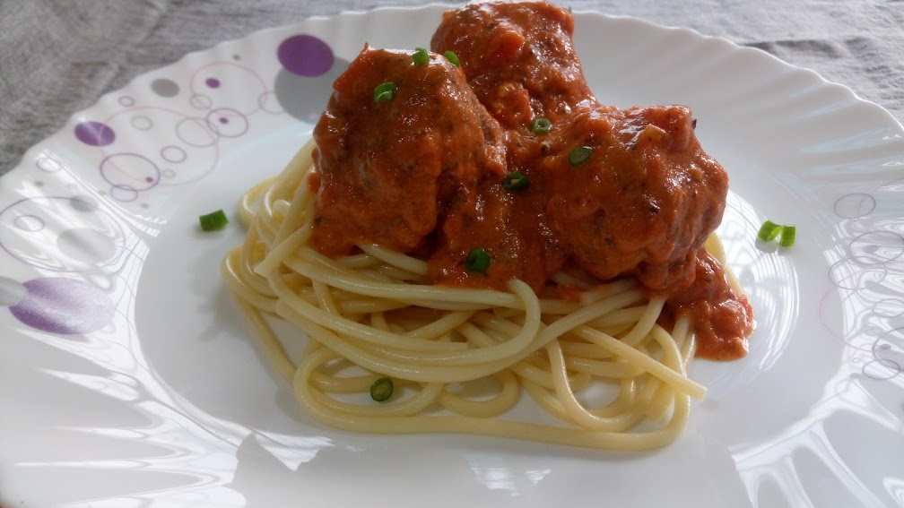 - Once cooked, You may take cooked spaghetti on a plate, add chicken balls on them and then pour some gravy on top OR