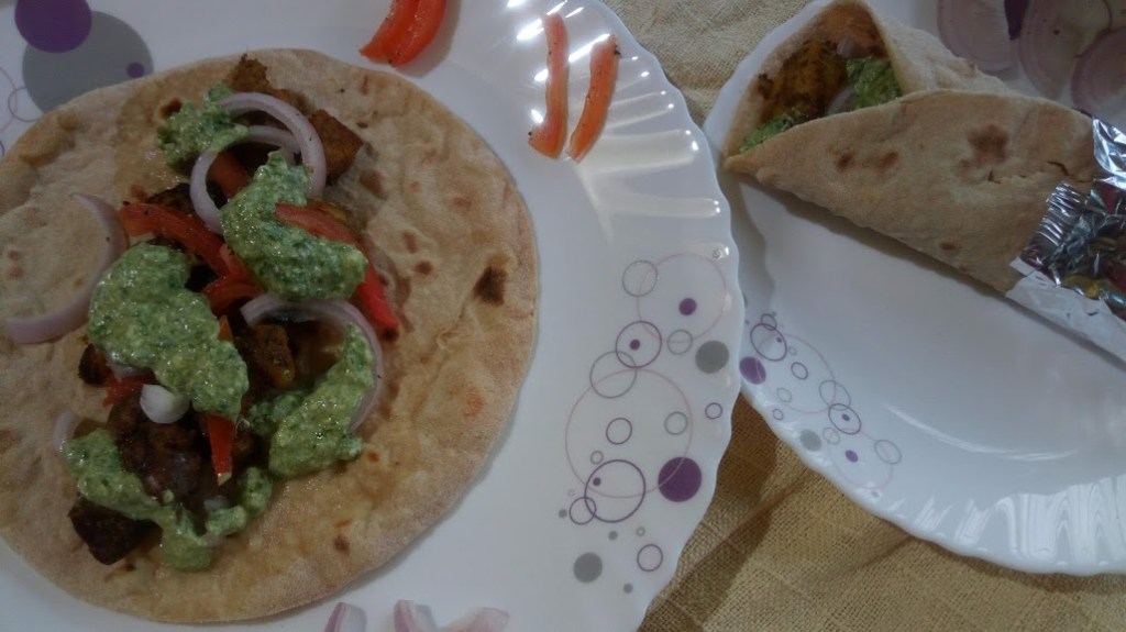 I love when there’s some left over food in the fridge, especially the ones which can be turned into a brand new dish once again than the ones which needs to be popped into the micro wave to warm for 2 minutes!! I especially love when there’s extra rice or rotis kept in the fridge for the day next. And if by some unexpected chance, there’s few boneless chicken pieces lying in the fridge, I am all surprised yet quite content, because then I can have my chicken tandoori roti wrap!! Slurp Slurp!!