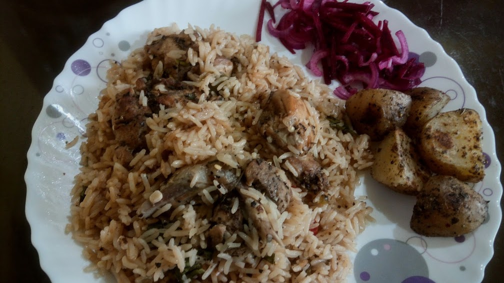 - ** I have always seen that if raw cumin powder (instead of dry roasted cumin powder) is used in any dish, it’s necessary to cook the spice nicely or with patience, otherwise the dish doesn’t taste that good. That’s why instead of mixing the marinate with the water and pour it over the rice, I cooked it properly.