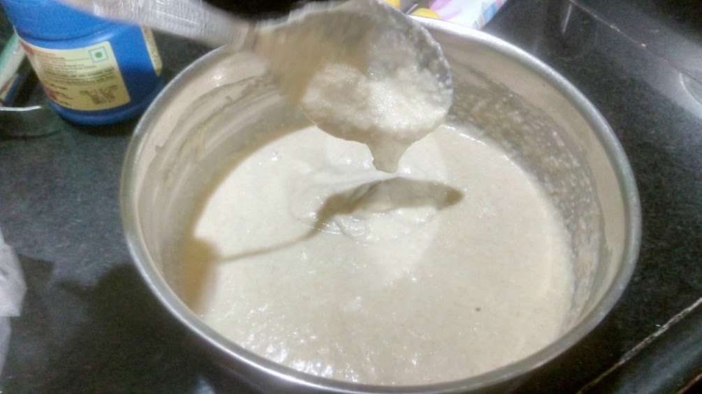 - Take the batter, add a pinch of baking soda and mix the bateer again.