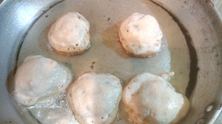 - OR.. You can dip the fried pithes in the sheera/ liquid sauce made of jaggery for few seconds and take them off the sheera and enjoy these Gokul pithes (this is another way of having them). To knwo how to make jaggery sheera.. check my last post (link shared below).