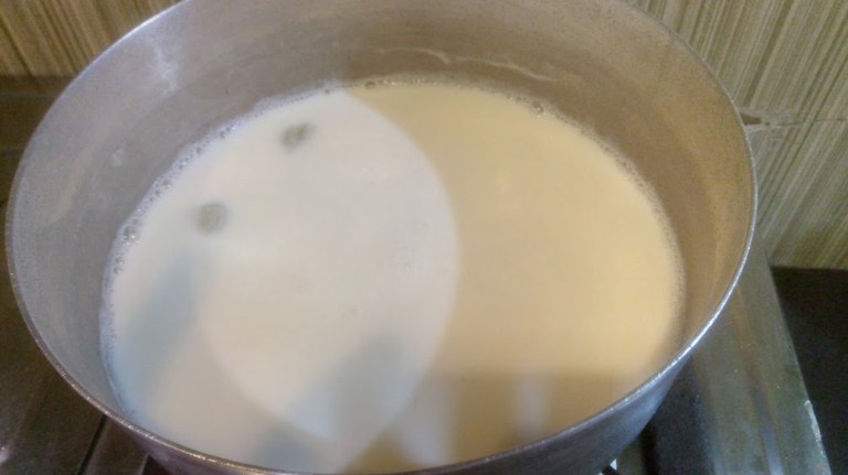 - Now wait for the milk to come to a boil, once the milk starts boiling.. bring the flame to medium and let the milk reduce to half.. this may take about 20 minutes.