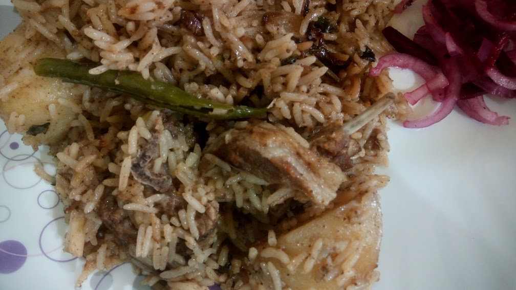 With my previous One Pot recipes (I hope you know about my fetish for One-pot rice recipes?), I took the risk of doing this particular one by myself without peeking for any inspiration (mutton, i.e. goat meat itself is all my inspiration), and of course, Lady of the House shared her expertise. This is more of a special occasion meal using less oil and spices, making it tasty but in a lighter way.. Is that okay now?