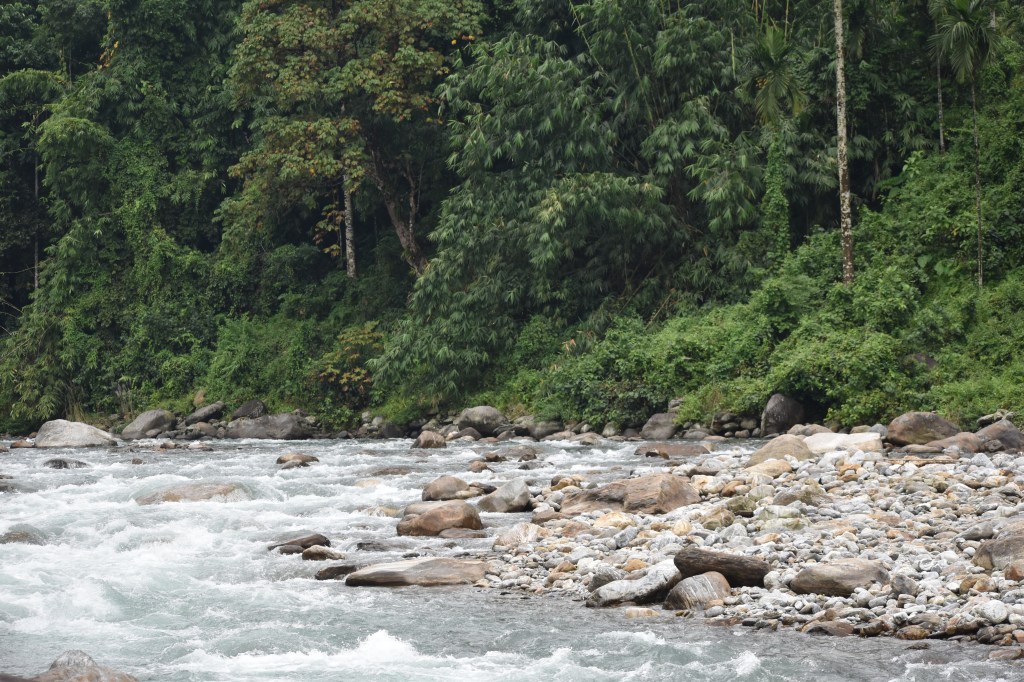 Chel Khola is a viewpoint by the river Chel. The river has flown down from the mountain, so you see big boulder rocks in between the white frothy river way, mountains above..