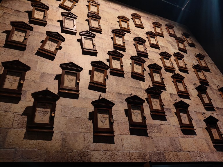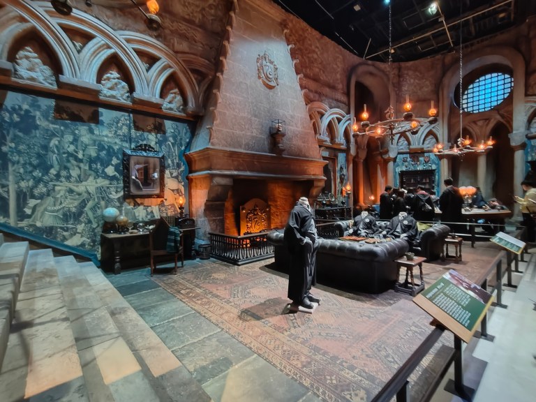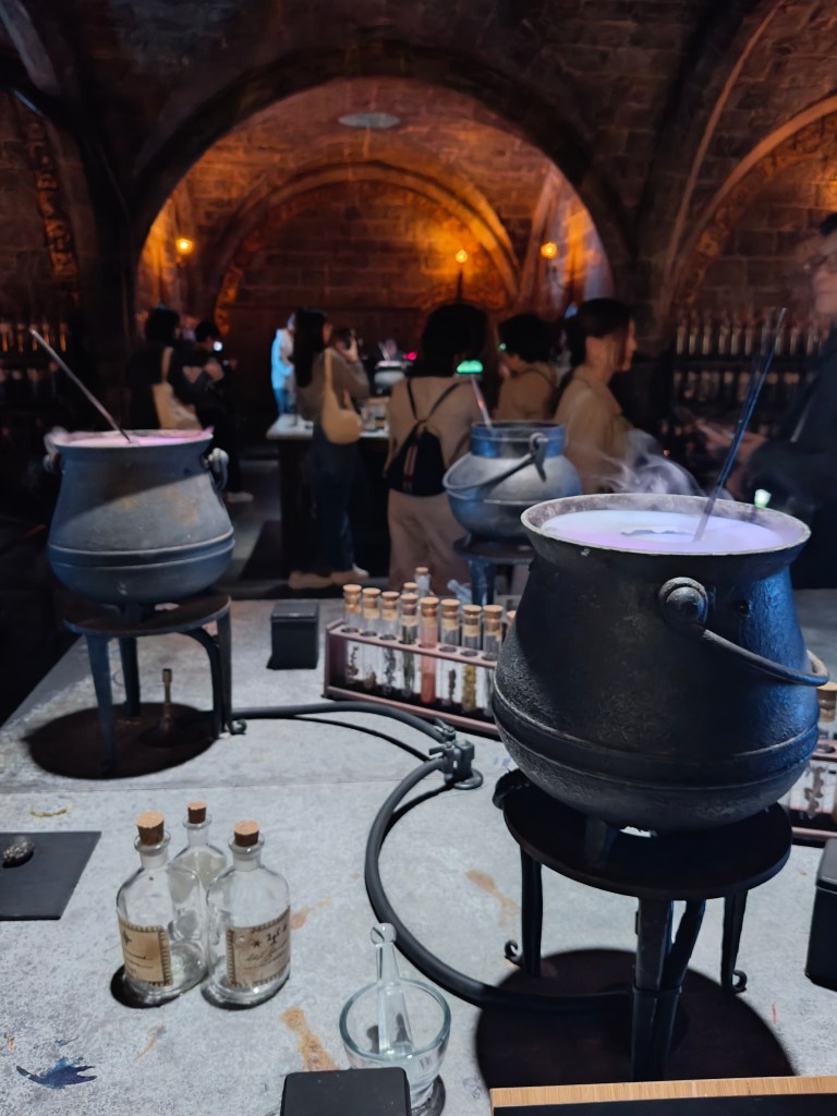 So once you are inside, there’s the great dining hall with restaurants/ dessert shops/cafes, etc. on one hand, you may start by eating something, maybe. Oh, by the way, come at least an hour before your booking slot, they let you enter.. as you can spend time at the café. Then there is this huge shop on the other hand, where you can buy all magical stuff, you know what I mean? From wand to house robes, from chocolate frogs to quills or some souvenirs for your muggle friends back in this world. Or you can keep this entire shopping till the end, as you will come back to the same place after the tour.